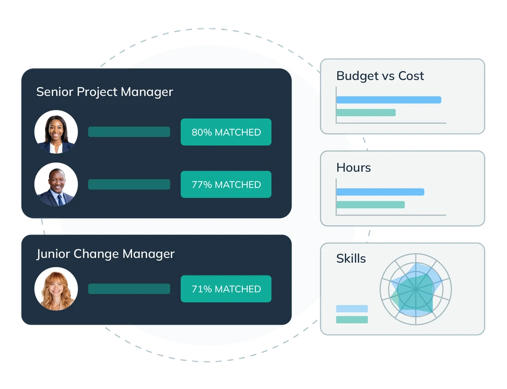 Demystify project roles and talent profiles to unlock the ideal match to perform a task based on specific, nuanced skills, not just job titles.