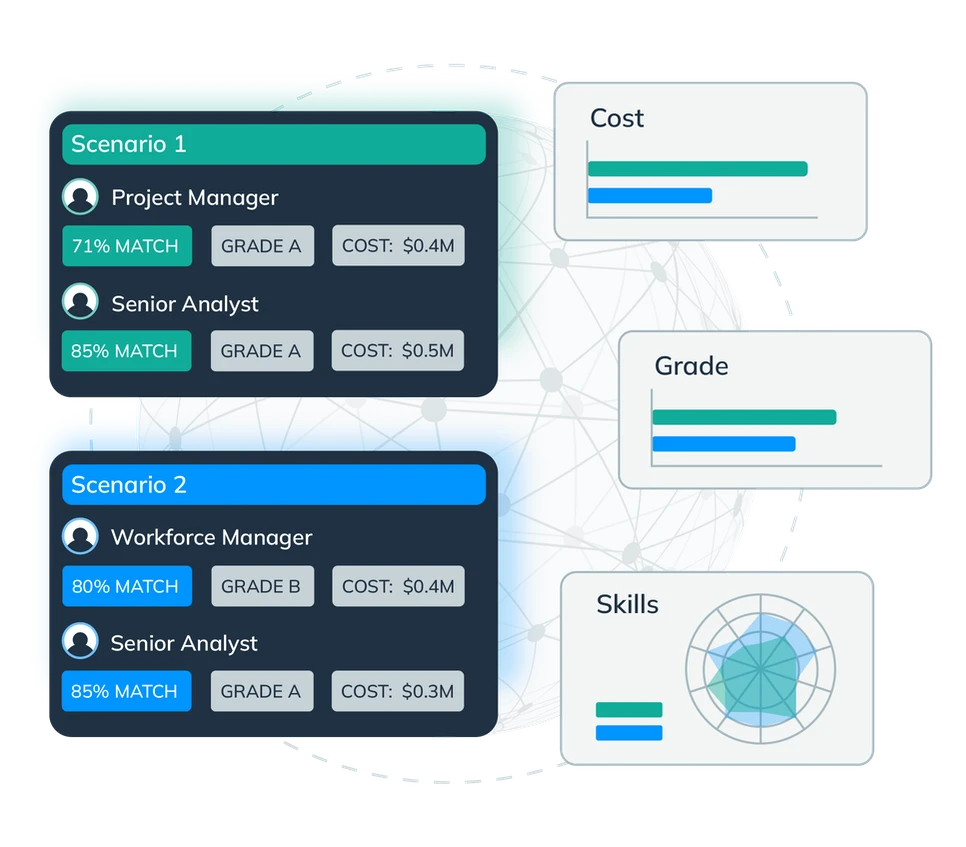 Plan your workforce capacity based on ‘What-if’ scenarios. While considering a major new project, evaluate its impact on your team before you commit. Model different scenarios to understand the impact on your resource plan, helping you make data-backed strategic decisions about growth, emerging skills, employee experience, and hiring.